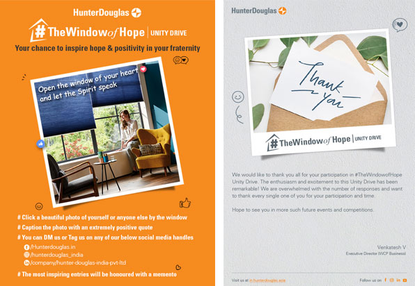 - The Method: The audience interest was maintained by asking architects to post their photographs with their window by tagging HunterDouglas India on their social handles
