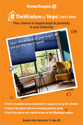 India is currently in a lockdown. The fear of coronavirus, loss of business, loss of employment and financial insecurity is haunting all who have locked themselves down. During these trying times, the humble window of your home is your gateway to the world outside. And, when people look outside their windows, they are ignited by the promise of humanity winning this fight against the coronavirus. Philosophically, the humble window is symbolic of the hope & positivity that is keeping everyone’s spirits alive while being locked down in their homes. ‘The Window of Hope’ unity drive is an attempt to emotionally appeal and connect the target audience to inspire the fraternity with their positive thoughts & wisdom.